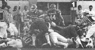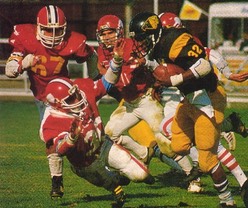 Ravens v Paris Spartcatus in 1984, Mark Walcott with the run