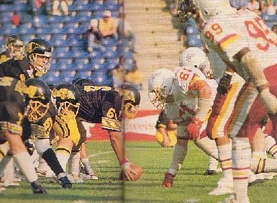 At Glasgow's Hellenvale Park, the Leicester Panthers had travelled north with much expectation to take on the Glasgow Lions. With 27 seconds left on the clock the Panthers led 15-14, and sensed victory. At the two minute warning, the Lions had started a drive at their own 40 yard line and, assisted by a personal foul call, found themselves at the Leicester 22 yard line with just 27 seconds left. Quarterback Mark Federspiel rolled right and fired the ball into the endzone where Mark Thompson made a leaping grab for the go-ahead score.