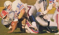 The Dutch had suffered a rough 9 hour Channel crossing by boat and were not in the best condition to play, yet they stifled GB with their normal extra enthusiasm. Ricky Ramashai of the Amsterdam Crusaders (who was to be a star at Eurobowl 88) was the game’s MVP and scored the Dutch TD. Nottingham’s Mick Terrington had forced a safety earlier on and Holland were holding on to an improbable 6-2 lead until fatigue finally caught up with them and Trevor Carthy of the hometown Bulls eventually roared in for a touchdown. Fellow Bull Richard Meanwell kicked the PAT and the second leg was set up as a cliffhanger.