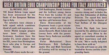 OL. Dean Locke (London Olympians), Gerard Colquhoun, Tim Green, Don Edmonson (Stirling Broncos), Gary Mills, Nigel Thomson, Richard Barrett (all Birmingham Bulls)