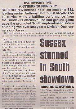 25th April - Southern Sundevils 20-12 Sussex Thunder, BSL Division One. Report
