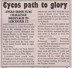 13th June - Drimnagh Cycos 20-12 Leicester Eagles, Flag Friendly. Report