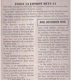 20th June - Essex Spartans 13-24 London Mets, BSL Division One. Report