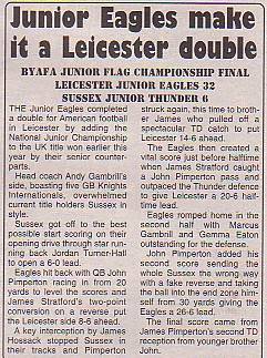 27th June - Leicester Jnr Eagles 32-6 Sussex Jnr Thunder, BYAFA Junior Flag Final. Report