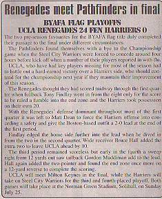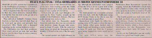 25th July - UCLA Renegades 12-18 Milton Keynes Pathfinders, BYAFA Youth Flag Final. Report