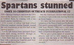18th July - Essex Spartans 10-12 Christian Outreach International, Friendly. Report