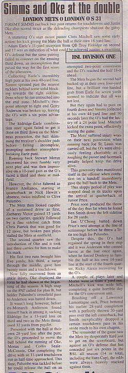 9th August - London O's 43-7 Oxford Saints, BSL Div.1 Quarter-Final. Report