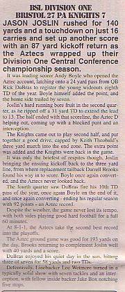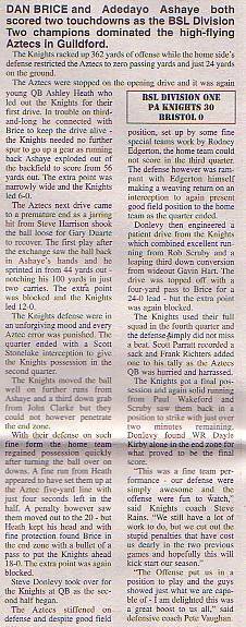 27th May - PA Knights 30-0 Bristol Aztecs, BSL Division One. Report