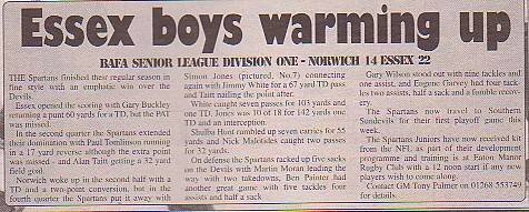 1st August - Norwich Devils 14-22 Essex Spartans, BSL Division One. Report