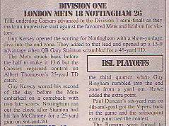 8th August - Nottingham Caesars 18-26 London Mets, BSL Division One Quarter-Final. Report