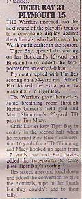 8th August - Tiger Bay Warriors 31-15 Plymouth Admirals, BSL Division Two Quarter-Final. Report