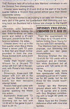 5th September - Chester Romans 24-22 Tiger Bay Warriors, BSL Division Two Final. Report