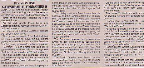 3rd May - Gateshead Senators 41-0 Yorkshire Rams, BSL Division One. Report