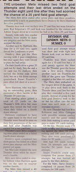 8th July - London Mets 20-22 Southern Sundevils, BSL Division One. Report