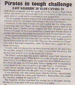 14th June - East Kilbride Pirates 38-19 Team Canada, Friendly. Report