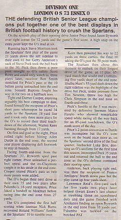 14th June - London O's 73-0 Essex Spartans, BSL Division One. Report