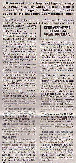 18th July - Finland 34-9 GB Lions, European Championship Semi-Final. Report