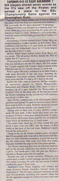 23rd May - East Kilbride Pirates 6-47 London O's, BSL Division One. Report