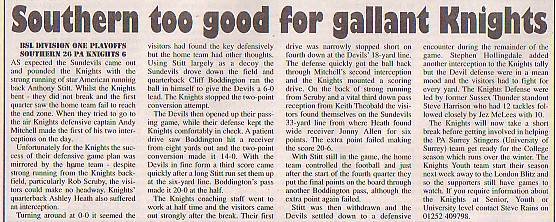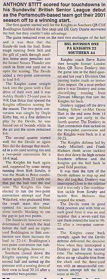 24th June - Southern Sundevils 36-22 PA Knights, BSL Division One. Report