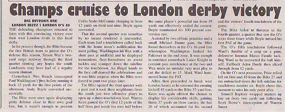 10th June - London Blitz 7-49 London O's, BSL Division One. Report