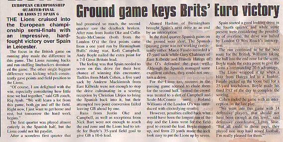 17th June - GB Lions 27-6 Spain, European Championship Quarter-Final. Report
