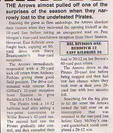 1st July - Redditch Arrows 12-26 East Kilbride Pirates, BSL Division One. Report