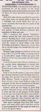 2nd August - Oxford Saints 22-15 AP Surge, BSL Division Two Quarter-Final.Report