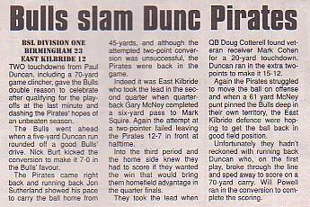 5th August - Birmingham Bulls 23-12 East Kilbride Pirates, BSL Division One.Report