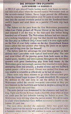 12th August - Lancashire Wolverines 14-8 Sabres (OT), BSL Division Two Quarter-Final. Report