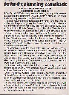 12th August - Oxford Saints 24-14 Plymouth Admirals, BSL Division Two Quarter-Final. Report