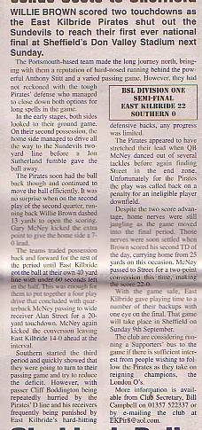26th August - East Kilbride Pirates 22-0 Southern Sundevils, BSL Division One Semi-Final. Report