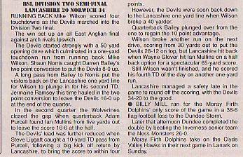 26th August - Lancashire Wolverines 20-34 Norwich Devils, BSL Division Two Semi-Final. Report